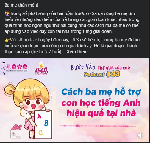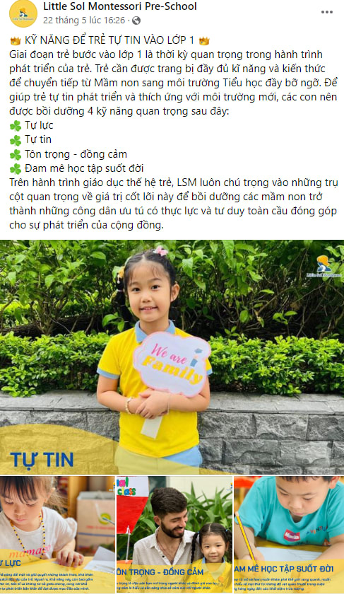 Cùng một nội dung, thay vì chia sẻ các hoạt động thường ngày của các con bằng hình ảnh, các trường có thể quay video để dựng thành Video hoàn chỉnh hoặc đăng trên tính năng mới của facebook là Reel. Các chủ đề để các trường thực hiện đa dạng, có thể là Trải nghiệm 1 ngày tại trường, Trải nghiệm 1 tiết học theo chủ đề (an toàn giao thông, ), mỹ thuật, khoa học, vũ trụ,...), Video buổi dã ngoại trải nghiệm cho các bé ở trường.
